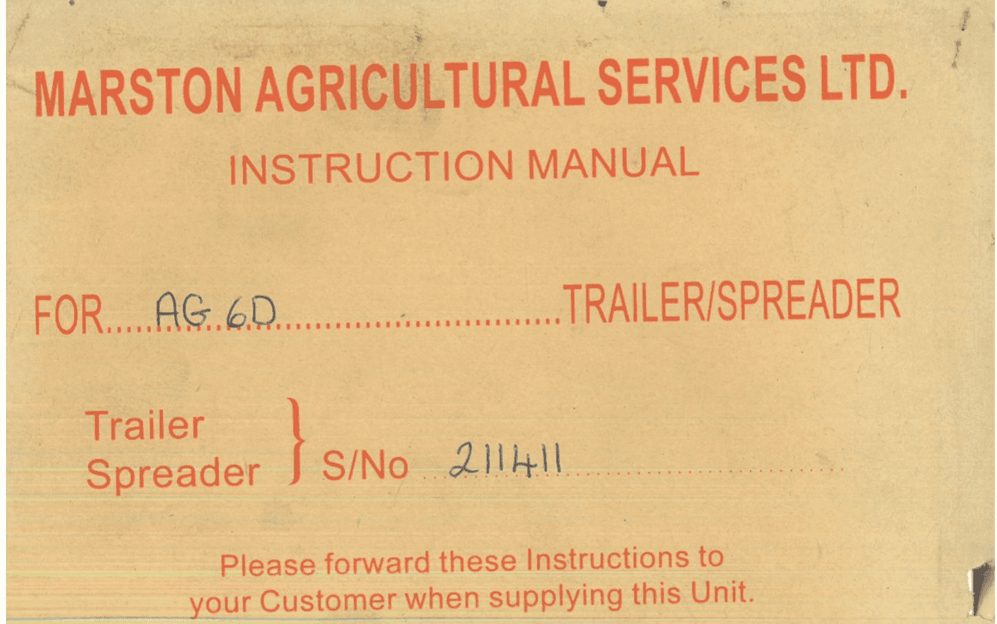 Trailer & Feeder Wagon Manuals Home / Implements Manuals / Trailer & Feeder Wagon Manuals / Marston Trailer AG6D Operators Manual Marston Trailer AG6D Operators Manual Marston Trailer AG6D Operators Manual £4.99 Stock Status: In Stock Add to your Wish List Information Specifications Reviews THIS IS A DIGITAL MANUAL AND WILL BE SENT TO THE EMAIL ADDRESS THAT IS PROVIDED AT THE CHECKOUTDELIVERY PROCESS - WE ARE IN THE UK AND OUR BUSINESS HOURS ARE BETWEEN 9am AND 5pm. MONDAY TO FRIDAY. IF THE ORDER IS PLACED WITHIN THESE HOURS MOST ORDERS ARE PROCESSED IN A COUPLE OF HOURS. ORDERS PLACED OUT THESE HOURS WILL BE PROCESSED THE NEXT WORKING DAY. IF YOU ARE UNSURE WHICH MANUAL YOU REQUIRE PLEASE CLICK HERE - FAQ'S PAGE DIGITAL DOWNLOADS ARE NON-RETURNABLE AND NON-REFUNDABLE Condition: New Product Code: KSJ3 Customer reviews No reviews left yet Write A Review Sort byMost RecentTop Rated No reviews have been left for this product, be the first to leave a review